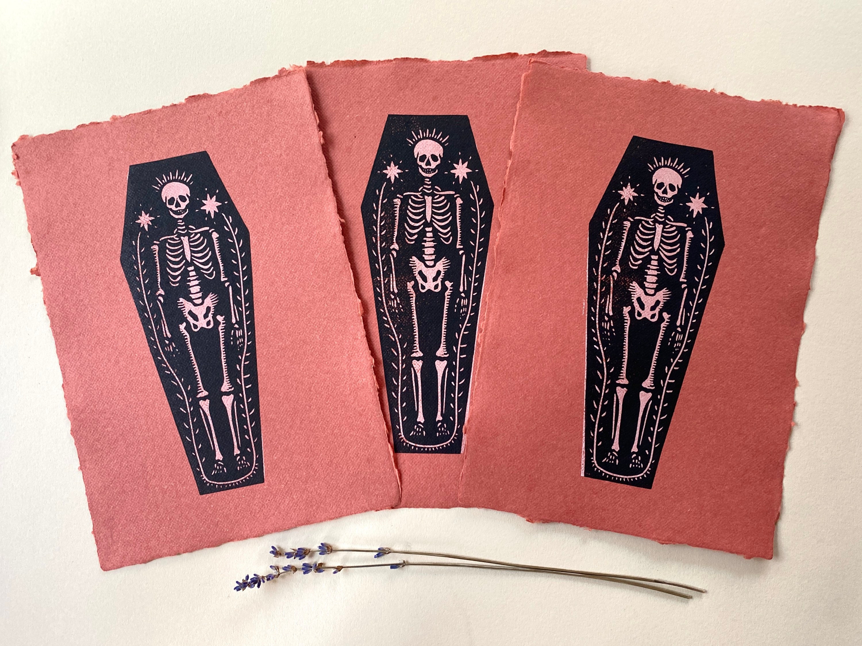 Folk Art Skeleton Coffin Relief Print Halloween Decor Etsy Canada
